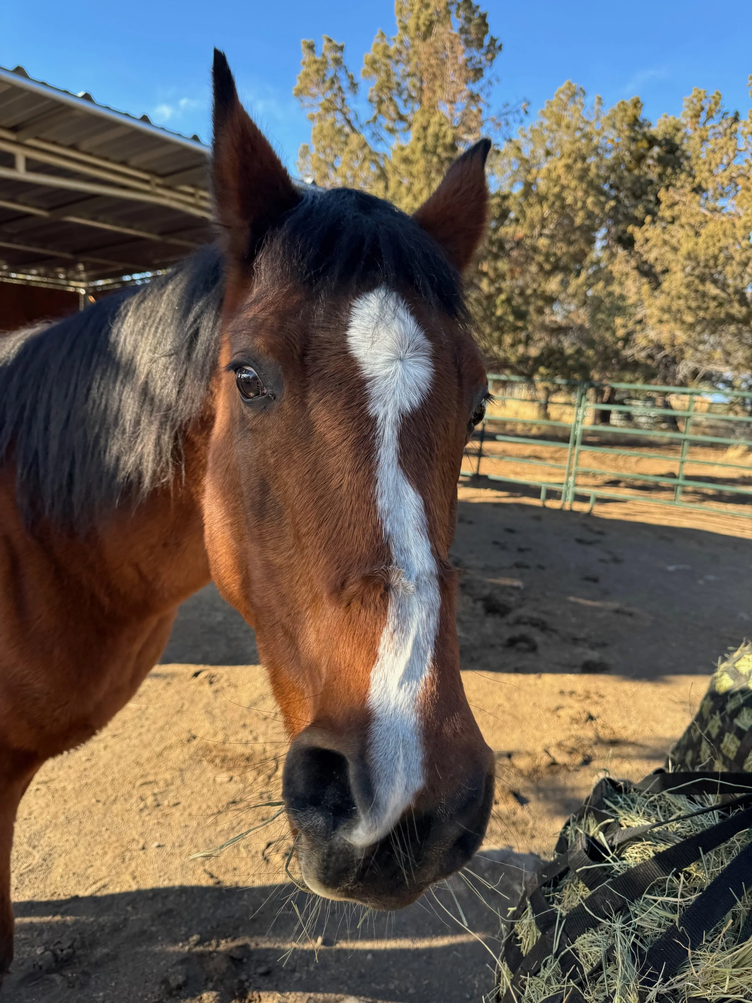 Gypsy is a registered Arab mare, age 26. Gypsy is an incredible horse—spirited and full of sass, yet grounded with a wise, old-soul energy. She embodies the very best of her breed’s temperament: intelligent, people-oriented, and wonderfully aware of her surroundings. Whether she’s with children or adults, Gypsy is always gentle, engaging, and an absolute joy to be around.
